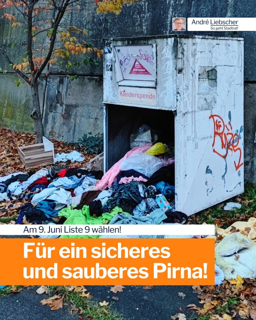Pirnas Oberbürgermeister ist aufgefordert, das Ordnungsamt und den Bauhof anzuweisen, die Müllverursacher umgehend zu ermitteln und die Sperrmüllberge erforderlichenfalls von Amts wegen beseitigen zu lassen … und das bitte vor der nächsten Stadtratssitzung am 14. Mai! Ich werde nachfragen.