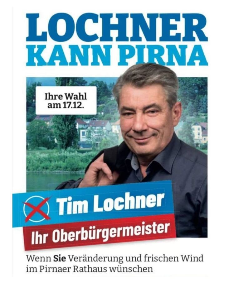 Und: Ein Drittel der Pirnaer Wähler hat sich weniger mit den Inhalten beschäftigt, die Lochner vertritt, sondern mit Lochner als Kandidat der AfD den Protest gewählt – gegen die Ampelregierung, gegen Flüchtlinge, gegen Energiepreise – alles Dinge, auf die der Pirnaer Oberbürgermeister keinen direkten Einfluss hat. Die Mehrheit der Pirnaer sieht sich einmal mehr bestätigt: Lochner kann Pirna nicht.