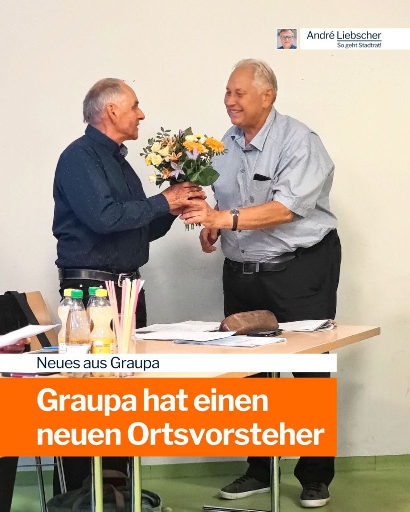 Mit der Stadtratswahl am 9. Juni 2024 wurden auch die Ortschaftsräte in Graupa und in Birkwitz-Pratzschwitz neu gewählt. In ihren konstituierenden Sitzungen wählen die Ortschaftsräte den Ortsvorsteher – so für Graupa am Dienstag, 10.09.2024.